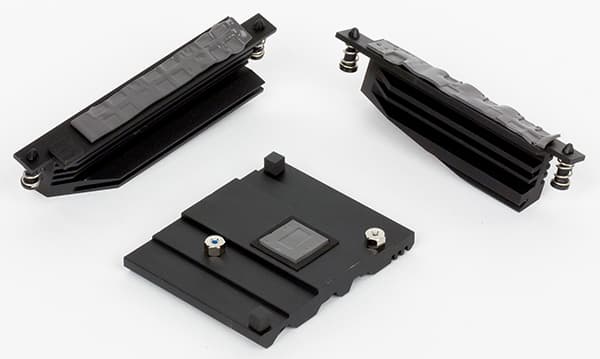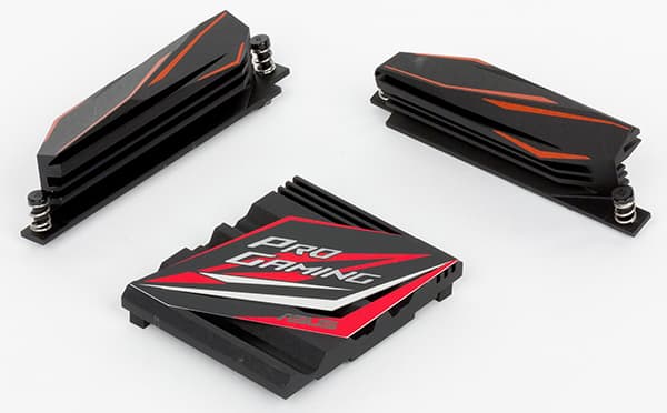 Для охлаждения различных тепловыделяющих компонентов на плате Asus H170 Pro Gaming предусмотрено в совокупности три радиатора. Один из них установлен на чипсете, а еще два расположены с двух сторон от процессорного разъема и закрывают MOSFET-транзисторы регулятора напряжения питания процессора.