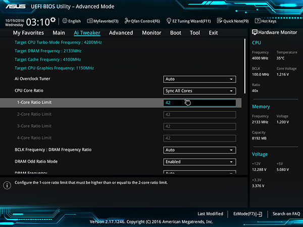 Однако максимальный коэффициент, который можно установить, равен максимальному коэффициенту процессора в режиме Turbo Mode. К примеру, в варианте процессора Intel Core i7-6700K это 42.