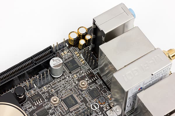 Для подключения к сети на плате Asus H170I-Pro имеется два гигабитных интерфейса. Первый реализован на базе PHY-контроллера (контроллер физического уровня) Intel i219-V (используется контроллер MAC-уровня, интегрированный в чипсет). Второй интерфейс реализован на базе сетевого контроллера Realtek RTL8111H. Оба контроллера подключаются к чипсету по линиям PCIe.