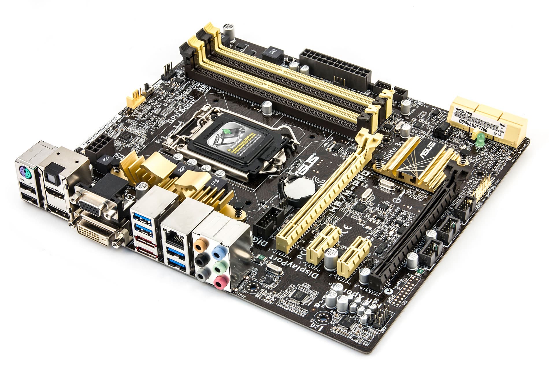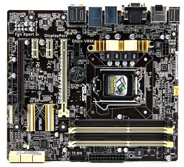 Плата Asus H87M-Pro выполнена в форм-факторе в microATX (244×213 мм), то есть, по своим размерам она немного больше, чем плата форм-фактора Mini ITX (170×170 мм), но меньше, чем плата с форм-фактором ATX (305×244 мм).
