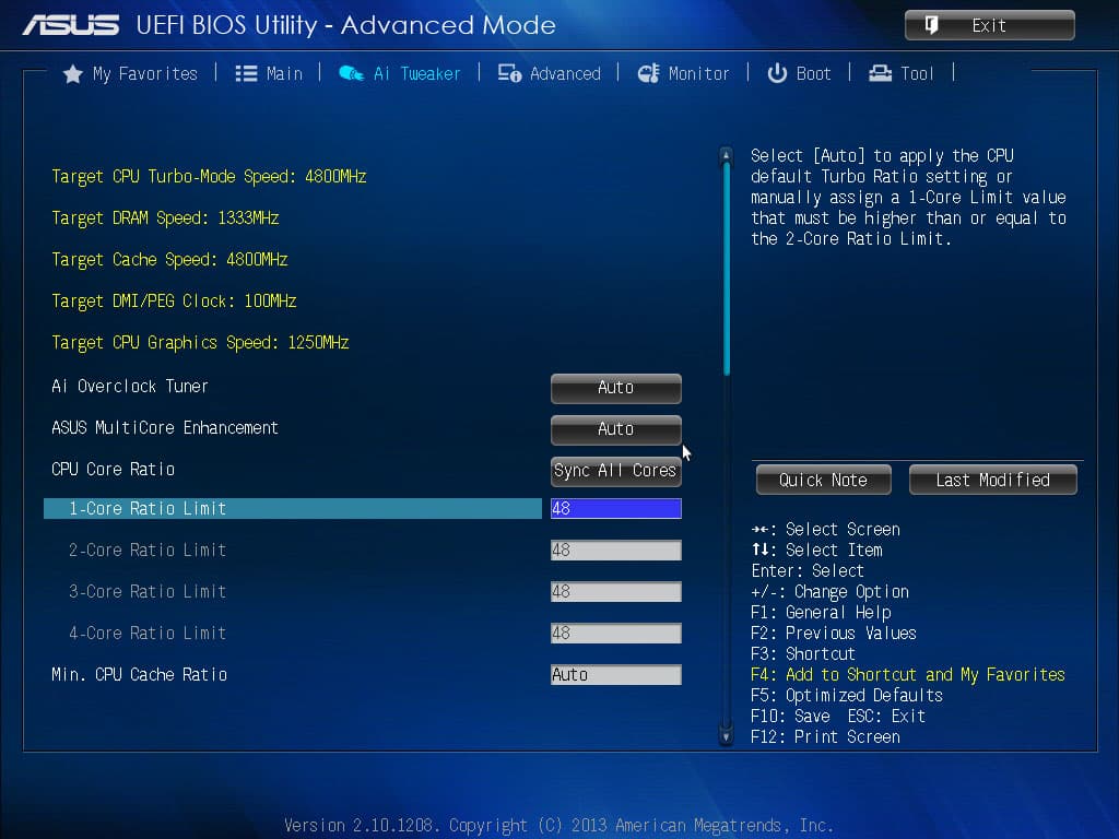 Кроме коэффициента умножения ядер процессора, в настройках Ai Tweaker можно задавать минимальное и максимальное значения коэффициента умножения для кэша L3 (CPU Cache Ratio). По умолчанию эти коэффициенты принимают значения, зависящие от установленной частоты ядер процессора (режим Auto).