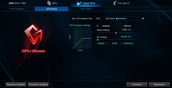 Так же, имеется возможность задавать максимальную частоту графического ядра и выбирать частоту работы памяти DDR3. Попутно отметим, что, несмотря на тот факт, что в спецификации на плату указывается лишь поддержка памяти DDR3 с максимальной частотой 1600 МГц, в настройках UEFI BIOS можно выбрать память с частотой вплоть до 3200 МГц.
