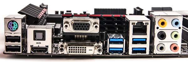 | Разъемы на задней панели | 1 × HDMI 1 × DVI-D 1 × VGA (D-Sub) 1 × S/PDIF (оптический, выход) 4 × USB 3.0 2 × USB 2.0 1 × RJ-45 6 × аудиоразъемов типа миниджек 1 × PS/2 |