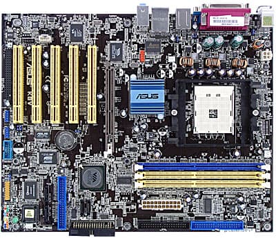 Компания не изменила традиционный дизайн платы и не передвинула разъемы памяти к процессору, развернув их, как мы видели на некоторых прототипах. Таким образом, ничего необычного в разводке платы нет, и ее недостатки вполне привычны для функционально насыщенных моделей: не совсем удобен для подключения ряд разъемов вдоль левого края, разъемы аудиовходов расположены перед слотами PCI, разъемы FDD и SATA/IDE RAID — позади них (первый, правда, «уложен на бок», так что мешать не будет), а размещение кабелей может препятствовать свободе манипуляций с модулями памяти. Доступ к некоторым из имеющихся перемычек может быть затруднен при установке платы в корпус, краткое описание их функциональности приведено на текстолите платы. Наличие напряжения +5 В Standby индицируется зеленым светодиодом. В трехканальном импульсном стабилизаторе напряжения питания процессора применены 6 конденсаторов по 1500 мкФ и 3 по 1200 мкФ; также на плате находятся стабилизаторы напряжения шины AGP (включающий 2 конденсатора по 1000 мкФ и несколько менее емких) и памяти (4 по 1000 мкФ).