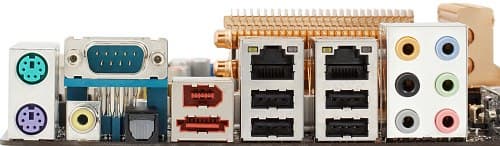 - 2 сетевых Gigabit Ethernet, с поддержкой 10/100/1000 Мбит/с, на базе чипсета (с поддержкой аппаратного брандмауэра, приоритезации трафика и прочих фирменных опций (подробнее см. в описании чипсета) и собственным высокоскоростным интерфейсом) и PHY-контроллеров Marvell 88E1118-MNC1;