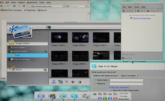 Не воспрещается загрузить и несколько компонентов одновременно, переключаясь между окнами, как в привычной многозадачной среде. В целом, задумка нам понравилась. Жаль, что в ASUS не догадались добавить медиаплеер, хотя бы для распространенных музыкальных форматов, а в идеале — и видео. В таком случае, компьютер мог бы послужить в качестве автономного медиацентра. Но судя по тому, что и фотоальбом добавился совсем недавно (версия на компакт-диске с платой не имела этого компонента), не исключено, что какие-то пополнения еще впереди.