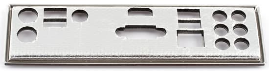 - Заглушка на заднюю панель платы для вывода соответствующих разъемов, причем фирменная, контактирующая с платой (в целях заземления), не через торчащий контакт (который наровит при установке платы в корпус залезть куда-нибудь в сетевой порт, а через прокладку из фольги с мягким пружинящим основанием;