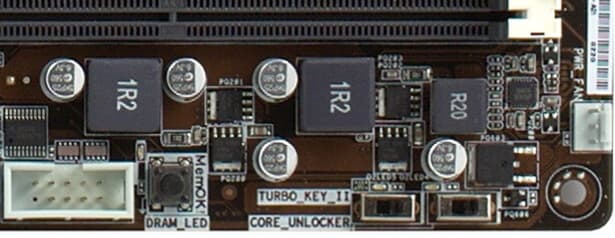 Еще одна оригинальная особенность: механические переключатели для включения автоматического разгона и специального режима для разблокировки ядер у процессоров из соответствующих серий, в частности, трехъядерников, основанных на 4-ядерном ядре и готовящихся к выпуску 4-ядерников на ядре Zosma, полученных блокировкой двух ядер у шестиядерных кристаллов. Здесь также принципиальной необходимости в «механике» нет, те же режимы можно включить и через BIOS.