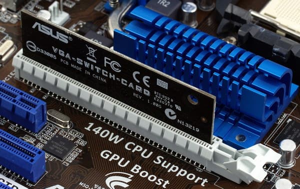 Не совсем ясно, для чего разработчикам пришлось прибегнуть к такому решению, поскольку данный чипсет позволяет конфигурировать слоты автоматически из BIOS, в чем мы и убедились, рассматривая платы от других производителей. С практической точки зрения гибкость полезна для того, чтобы пользователь сам мог решить, что для него важнее: если надо оставить побольше свободных PCIE-слотов, действительно, удобно задействовать под видеокарту второй слот, как и предлагается в данном случае. Но если надо поддержать PCI-карты, предпочтительнее было бы занять видеокартой первый слот. Разумеется, для недорогих и среднебюджетных видеокарт что 8, что 16 линий PCI Express 2.0 представляют избыточную пропускную способность, однако всегда приятно быть уверенным, что имеющиеся возможности используются по-максимуму.