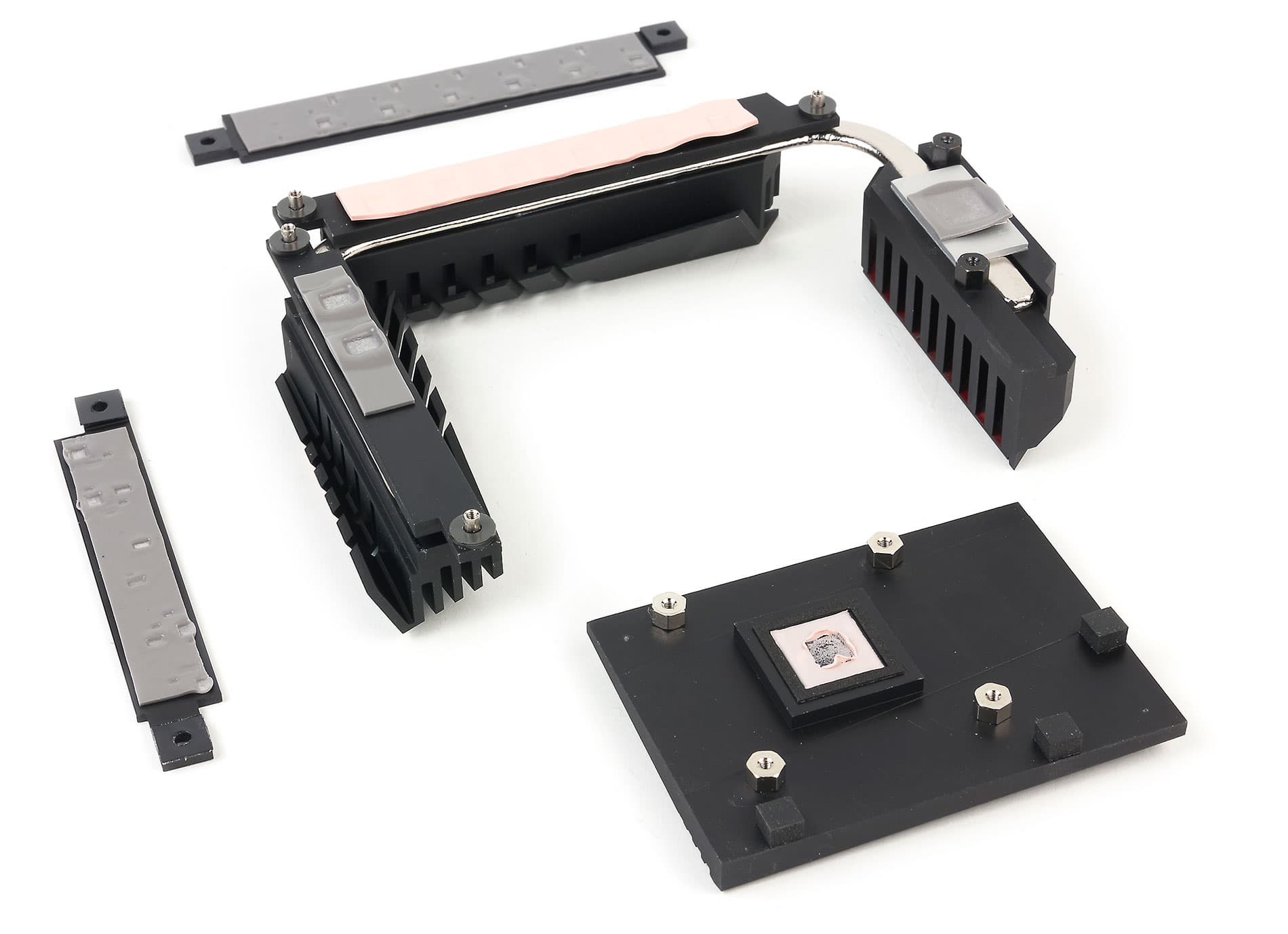 Угловой радиатор соединен тепловой трубкой с еще одним радиатором, который установлен на коммутаторе линий PCI Express 3.0 PLX PEX8747. Ну и еще один радиатор традиционно расположен на чипсете.