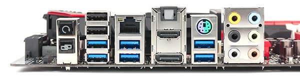 | Разъемы на задней панели | 1 × HDMI (выход) 1 × DisplayPort 6 × USB 3.0 2 × USB 2.0 1 × RJ-45 6 × аудиоразъемов типа миниджек 1 × S/PDIF (выход, оптический) |