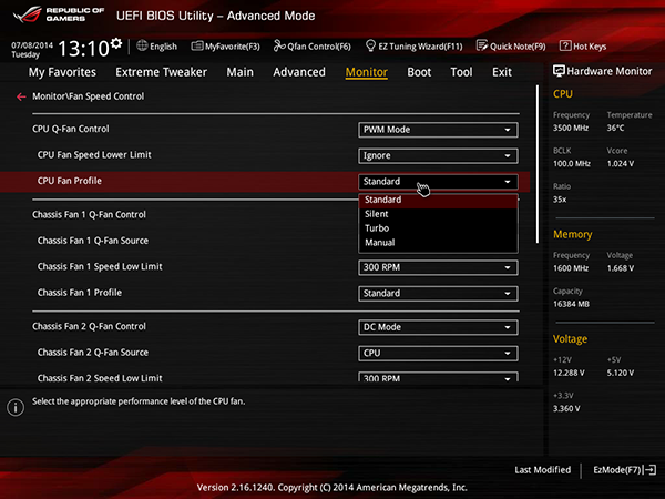 Ну и, традиционно, через UEFI BIOS можно реализовать настройку скоростного режима работы всех подключенных вентиляторов.