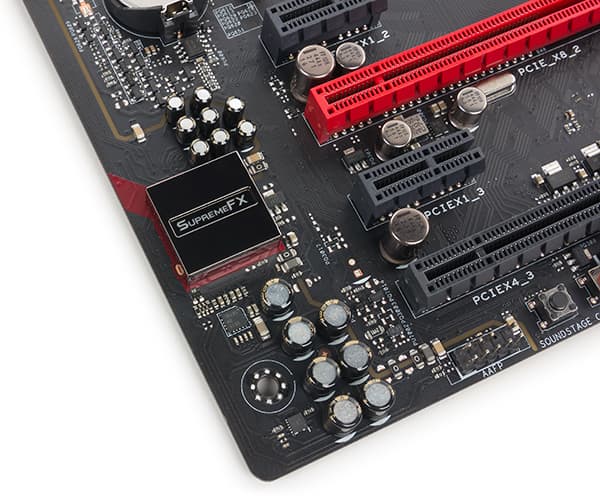 На всех новых платах серии Asus Maximus VII получила дальнейшее развитие аудиоподсистема SupremeFX. В добавление к тому, что уже было реализовано ранее, в версии SupremeFX 2014 реализовали новый усилитель Sonic SenseAmp, который автоматически определяет импеданс наушников (32/150 Ом или выше) и автоматически подстраивает под нагрузку усилитель.