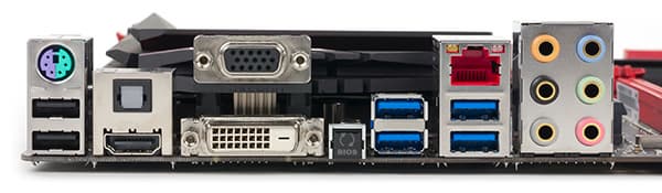 | Разъемы на задней панели | 1 × HDMI 1 × VGA 1 × DVI-D 4 × USB 3.0 2 × USB 2.0 1 × RJ-45 1 × S/PDIF (оптический, выход) 6 × аудиоразъемов типа миниджек 1 × PS/2 |