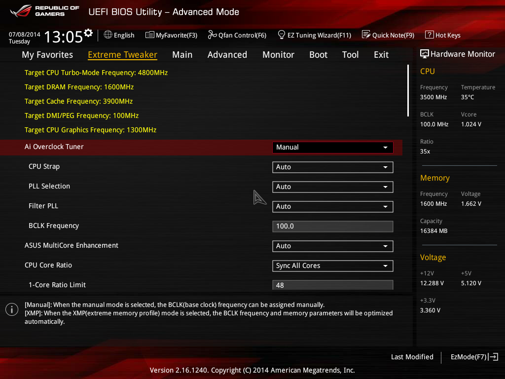Набор настроек здесь типичен, так что не станем повторяться. Отметим лишь в качестве справки, что процессор Intel Core i7-4770K нам удалось разогнать на плате Asus Maximus VII Hero до частоты 4,8 ГГц при значении BCLK Frequency 100 МГц. Для нашего экземпляра процессора Intel Core i7-4770K это типичный результат в плане разгона (хотя на плате Asus Sabertooth Z97 Mark II этот процессор запускался и на частоте 4,9 ГГц).