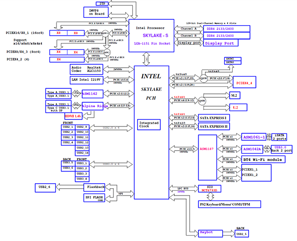 Блок-схема платы Asus Maximus VIII Extreme показана на рисунке.