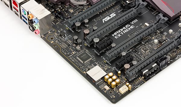 Поэтому, на плате Asus Maximus VIII Extreme используется дополнительный коммутатор ASMedia ASM1187e на восемь линий PCIe 2.0.