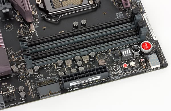 Как и большинство плат, модель Asus Maximus VIII Extreme имеет 24-контактный и 8-контактный (EATX 12В) разъемы для подключения блока питания. Помимо этого имеется еще один 4-контактный (EATX 12В) разъем питания и периферийный разъем питания.