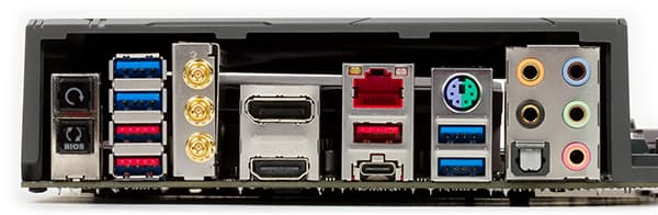 | USB-порты | 6 × USB 3.0 (чипсет) 6 × USB 2.0 (чипсет) 2 × USB 3.0 (ASMedia ASM1042A) 2 × USB 3.1 (ASMedia ASM1142) 2 × USB 3.1 (Intel) |