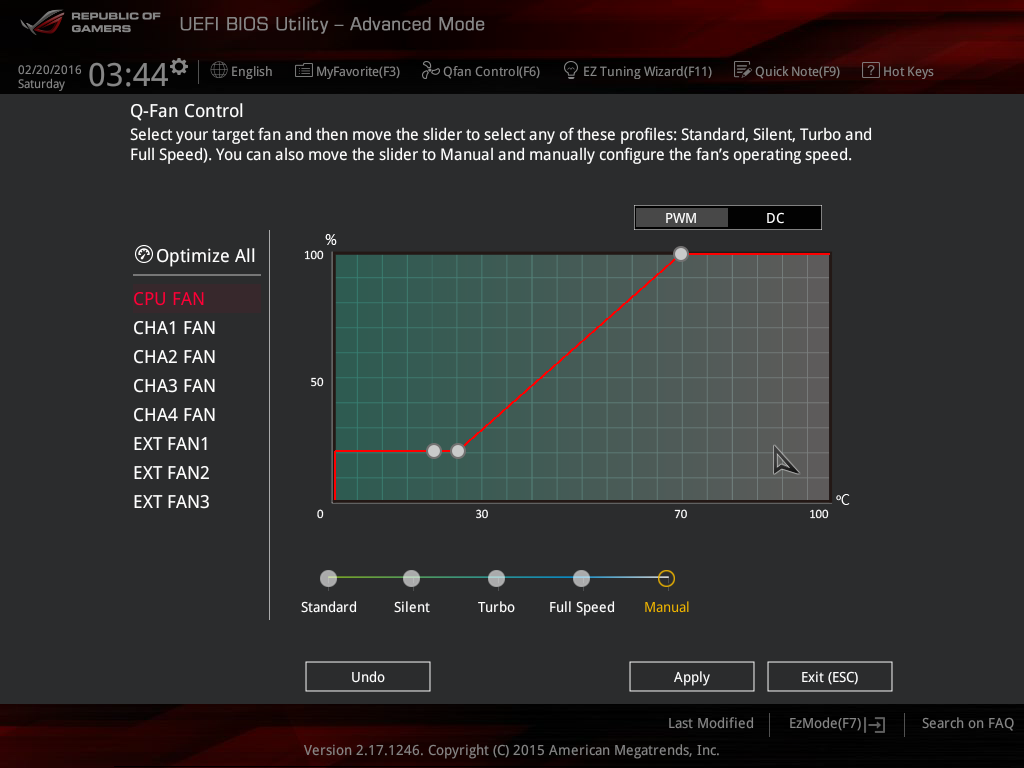 Еще одной особенностью UEFI BIOS платы Asus Maximus VIII Extreme является возможность настройки скоростных режимов всех вентиляторов, подключенных к плате, с возможностью их калибровки. Впрочем, тут нет ничего особенного. Такая возможность присутствует на всех платах Asus.