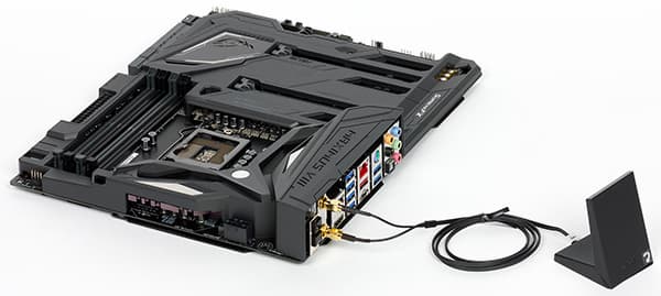 Кроме того, имеется еще и двухдиапазонный (2,4 и 5 ГГц) WiFi+Bluetooth-контроллер Asus Wi-Ei Go! Этот контроллер поддерживает стандарты 802.11a/b/g/n/ac и Bluetooth 4.0. К данному контроллеру подключаются две антенны.