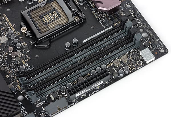 Для установки модулей памяти на плате Asus Maximus VIII Formula предусмотрено четыре DIMM-слота, что позволяет устанавливать по два DDR4-модуля на каждый из двух каналов памяти с максимальным объемом до 64 ГБ (при использовании 16-гигабайтных модулей). Поддерживается только небуферизованная память без ECC. Отметим также, что плата поддерживает память с XMP-профилями.