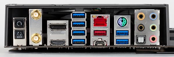 | Разъемы на задней панели | 1 × HDMI 1.4 1 × DisplayPort 1.2 6 × USB 3.0 1 × USB 3.1 (Type A) 1 × USB 3.1 (Type c) 1 × RJ-45 1 × S/PDIF (оптический, выход) 5 аудиоразъемов типа миниджек 1 × PS/2 |