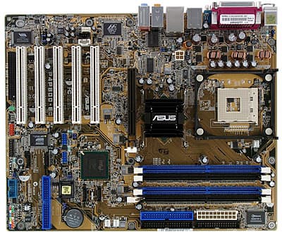 Разводка привычна для продуктов этого бренда, даже огрехи можно назвать «унифицированными» — как всегда, не совсем удобно расположен ряд разъемов вдоль левого края, разъемы аудиовходов расположены перед слотами PCI, при установленной видеокарте затрудняется доступ к защелкам разъемов для установки модулей памяти, а скученность разъемов будет мешать свободному доступу к ним. Краткое описание перемычек приведено на текстолите, доступ к ним может быть затруднен после установки платы в корпус. Наличие напряжения +5 В Standby индицируется зеленым светодиодом. В трехканальном импульсном стабилизаторе напряжения питания процессора применены 6 конденсаторов по 1500 мкФ и 3 по 1200 мкФ. В стабилизаторе напряжения шины AGP применены 2 конденсатора 1000 мкФ и несколько менее емких, в стабилизаторе напряжения памяти — 4 конденсатора 1000 мкФ.