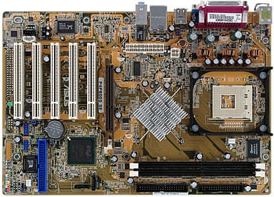 Разводка привычна для продуктов этого бренда, даже огрехи можно назвать «унифицированными» — как всегда, не совсем удобно расположен ряд разъемов вдоль левого края, разъемы аудиовходов расположены перед слотами PCI, при установленной видеокарте затрудняется доступ к защелкам разъемов для установки модулей памяти, а скученность разъемов будет мешать свободному доступу к ним. Краткое описание перемычек приведено на текстолите, доступ к ним может быть затруднен после установки платы в корпус. Наличие напряжения +5 В Standby индицируется зеленым светодиодом. В трехканальном импульсном стабилизаторе напряжения питания процессора применены 6 конденсаторов по 1500 мкФ и 3 по 1200 мкФ. В стабилизаторе напряжения шины AGP применены 2 конденсатора 1000 мкФ и несколько менее емких, в стабилизаторе напряжения памяти — 4 конденсатора 1000 мкФ.