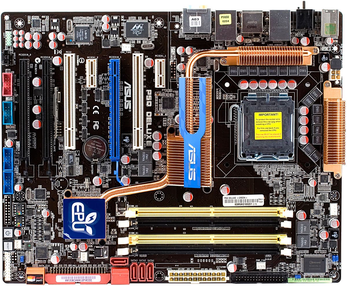 Материнская плата ASUS P5Q Deluxe — хороший пример топовой модели, не раздражающей своей ориентированностью на экзотические потребности виртуальных «хардкорных геймеров» и иже с ними. Понятно, что четыре сетевые розетки — это в 2 раза круче, чем две, а шесть слотов PCIEx16 — примерно в 3 раза «мощнее», чем два стандартных. Данная же плата сполна отрабатывает свою высокую стоимость, не прибегая при этом к услугам технологий, ключевым фактором которых является отраженный в названии количественный показатель.