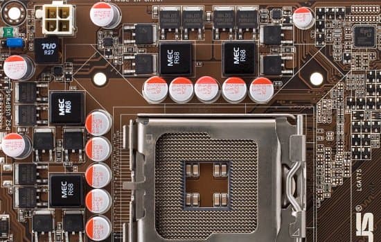 Что же на текстолите есть? Ну, прежде всего, есть качественный преобразователь питания процессора, имеющий 4-канальную схему на 4 полевых транзисторах в каждом канале, что позволяет не уделять дополнительного внимания охлаждению этих «полевиков» (через каждый из них в отдельности протекает не слишком большой ток). По всей плате используются только качественные полимерные конденсаторы японского производства (Fujitsu, теперь Nichicon). В целом, картина, не позволяющая претендовать на лавры самой «навороченной» платы, но гарантирующая стабильность работы любых процессоров. Приятно видеть, с учетом отнюдь не экстремальной цены модели.
