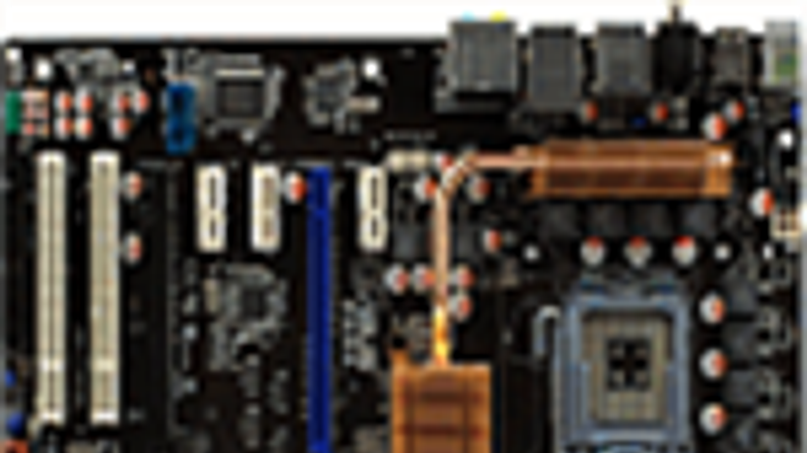 Не удивительно, что при 24 полевиках в конвертере питания процессора дополнительное охлаждение этим компонентам не требуется. Так что набортная система охлаждения использует один небольшой радиатор, монтируемый сверху на части полевых транзисторов через толстую термопрокладку, снимающий тепло с тепловой трубки от радиатора на северном мосту чипсета. Этот радиатор тоже имеет очень скромный размер (мы уж молчим про традиционно крошечную нашлепку на южном мосту), и, конечно, все радиаторы — простые алюминиевые. Впрочем, система охлаждения абсолютно адекватна, так как под нагрузкой радиаторы остаются теплыми, а не становятся горячими. Собственно, и тепловая трубка в таких условиях является излишеством, но тут уж инженеры пошли на поводу у маркетологов.