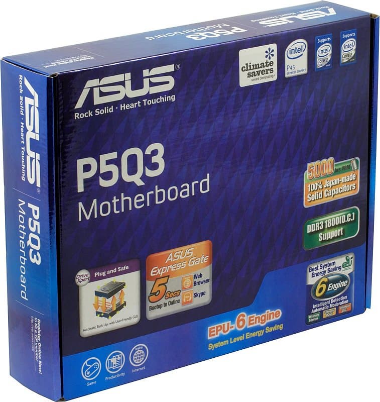 Выбранная для сегодняшнего обзора плата относится к прекрасно знакомой нашим читателям серии ASUS P5Q, включающей модели среднего и верхнего уровня на базе чипсета Intel P45. В данном случае мы имеем модель без суффикса Deluxe, то есть можно уверенно предположить, что речь идет не о топовом решении. Фактически, P5Q3 — базовая модель компании на P45, поддерживающая DDR3, у которой имеется всего две «сестры»: «старшая» Deluxe/WiFi-AP @n и «сводная» P5QC (с поддержкой DDR2 и DDR3). Как видите, ASUS тоже не пылает преждевременным энтузиазмом по отношению к новому типу памяти.