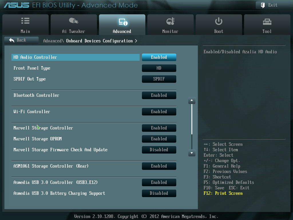 При разработке ASUS P8Z77-V Premium инженерам компании пришлось постараться: кроме возможности работы с четырьмя видеокартами, на этой плате есть также большое число дополнительных контроллеров. Если сравнивать с версией Deluxe, то можно говорить о том, что выполнено смещение от «массовых» портов USB к более профессиональным SATA. При этом базовые функции были возложены на топовый чипсет этой платформы — Intel Z77. На плате использованы все шесть его портов SATA: два со скоростью работы 6 Гбит/с и три на 3 Гбит/с реализованы стандартными разъемами, а последний (на 3 Гбит/с) представлен в виде слота mSATA. Причем SSD такого формата (емкостью 32 ГБ) входит в комплект поставки. Предполагается, что он будет использован с технологией Intel Smart Response Technology. Интересно, что для него даже есть свой индикатор активности в виде голубого светодиода на плате. Дополняют этот список микросхема Marvell 88E9230 с четырьмя внутренними портами SATA 6 Гбит/с и ASMedia ASM1061 с парой eSATA с поддержкой скорости 6 Гбит/с и мультипликаторов портов. Первый из дополнительных контроллеров поддерживает реализацию массивов RAID 0, 1 и 10, а также специальной технологии кеширования с использованием SSD. Подробнее о работе с накопителями на этой плате мы поговорим чуть позже.