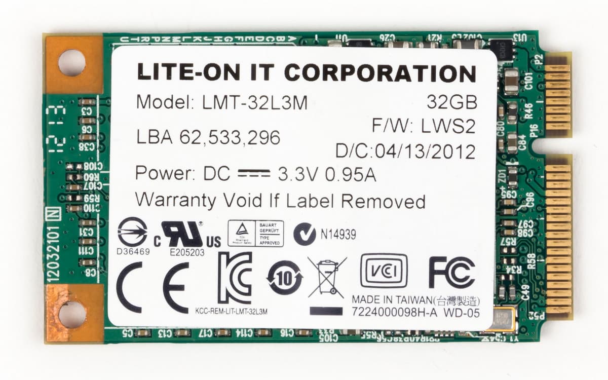 Начнем с проверки производительности комплектного SSD — Lite-On IT LMT-32L3M. Учитывая его «бесплатность», рекордов мы не ждем. Накопитель основан на контроллере Marvell 88SS9175, имеет 128 МБ кэш-памяти, 1 МБ флэша для прошивки и пару чипов Toshiba основной памяти. Все накопители подключались к чипсетным портам, были установлены AHCI-драйвера Intel.