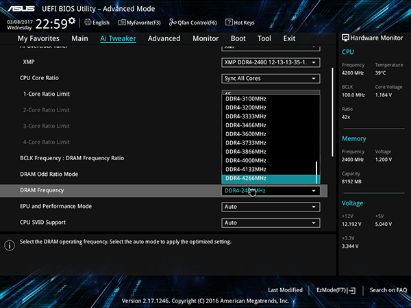 Максимальную частоту модулей памяти DDR4 можно установить равной 4266 МГц, но.... лишь установить. Реально максимальная частота памяти будет составлять лишь 2400 МГц..