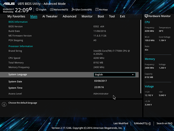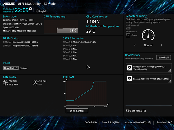 Здесь все стандартно. Есть два режима отображения: упрощенный (EzMode) и расширенный (Advanced).
