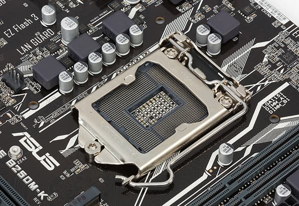 Плата Asus Prime B250M-K основана на чипсете Intel B250 и поддерживает только процессоры Intel Core 7-го и 6-го поколений (кодовые наименования Kaby Lake и Skylake) с разъемом LGA1151.
