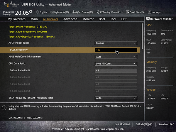 Кроме того, имеется возможность менять частоту BCLK c шагом в 0,5 МГц. Максимальное значение частоты BCLK может составлять 650 МГц.