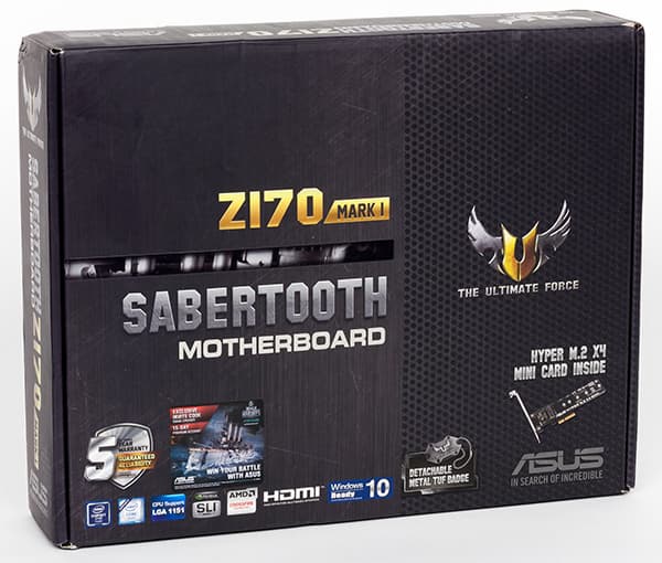 Мы уже рассмотрели несколько моделей материнских плат Asus на чипсетах Intel 100-й серии: это были платы cерий ROG, Pro Gaming и Asus Signature. И только серия Asus TUF пока была нами не затронута, так что в этой статье мы рассмотрим одну из новинок серии Asus TUF — модель Asus Sabertooth Z170 Mark I, которая пришла на смену легендарной Asus Sabertooth Z97 Mark I. Напомним, что серия плат Asus TUF (The Ultimate Force) ориентирована на сценарии работы, в которых требуются повышенная надежность и стабильность. Платы этой серии имеют пятилетнюю гарантию и обладают рядом функциональных особенностей, повышающих их надежность.