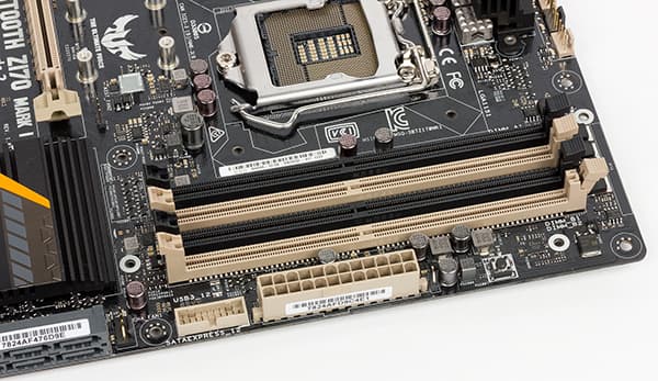 Для установки модулей памяти на плате Asus Sabertooth Z170 Mark I предусмотрено четыре DIMM-слота. В руководстве пользователя отмечается, что плата поддерживает небуферизованную память DDR4 (non-EСС), а максимальный объем памяти составляет 64 ГБ (при использовании модулей емкостью по 16 ГБ). Поддерживается память с XMP-профилями.