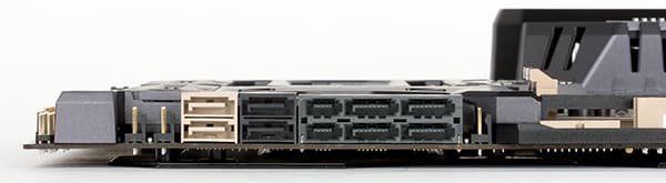 Для подключения всевозможных периферийных устройств на плате предусмотрено шесть портов USB 3.0, восемь портов USB 2.0 и два порта USB 3.1.