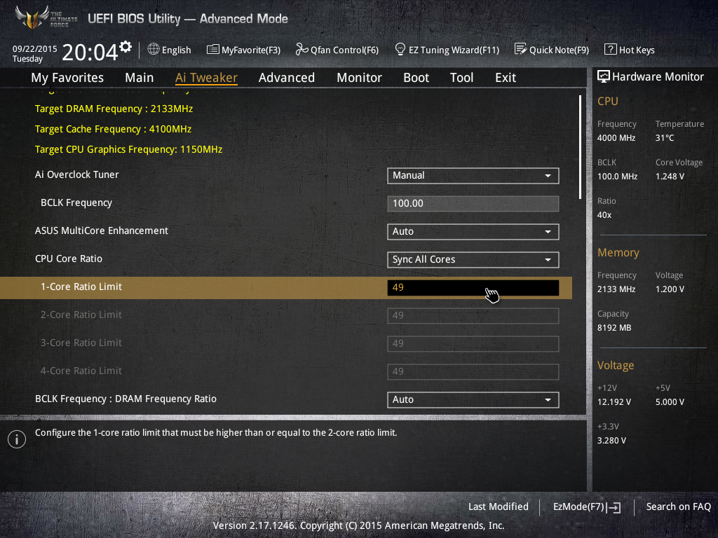 Но в ручном режиме плата Asus Sabertooth Z170 Mark I имеет отличные возможности для разгона процессора. В частности, нам удалось разогнать процессор Intel Core i7-6700K до частоты 5 ГГц при использовании воздушного охлаждения. Разгон мы производили исключительно путем изменения коэффициента умножения одновременно для всех ядер процессора при частоте BCLK 100 МГц. Важно подчеркнуть, что все остальные параметры были в режиме Auto.