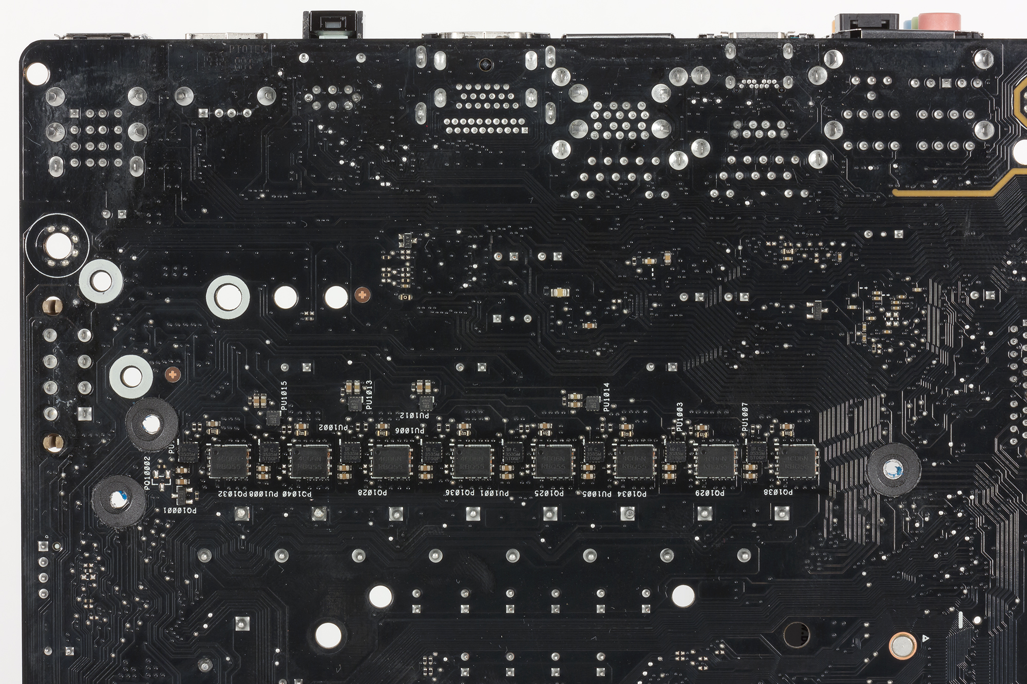 Сами каналы питания построены с применением MOSFET-драйверов IR3535 (они расположены с обратной стороны платы) и дискретных MOSFET-транзисторов NTMFS4C09N.