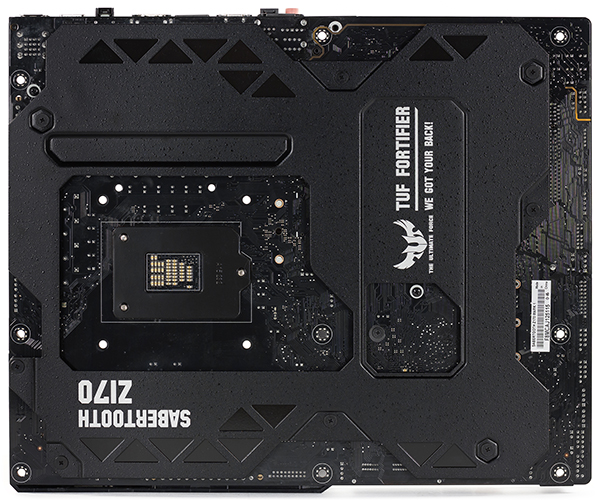 Отличительной особенностью плат Asus Sabertooth является наличие защитного кожуха Thermal Armor, который, по замыслу производителя, должен препятствовать проникновению пыли и оптимизировать охлаждение компонентов. В новой модели платы защитный кожух Thermal Armor отличается от того, который устанавливался на плате Asus Sabertooth Z97 Mark I. С лицевой стороны платы кожух сделан из пластика серебристо-серого цвета, стилизованного под металл, а с обратной стороны платы устанавливается металлическая пластина TUF Fortifier, которая препятствует изгибу текстолита и дополнительно рассеивает тепло.