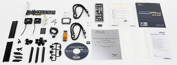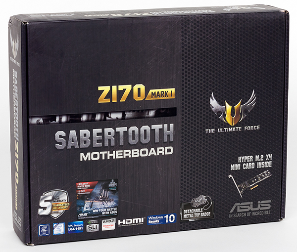 Комплектация платы Asus Sabertooth Z170 Mark I вполне типична для серии Asus TUF. Она поставляется в коробке в стиле милитари.
