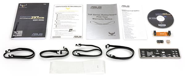 Нужно отметить, что комплектация платы Asus Sabertooth Z97 Mark II немного уступает комплектации платы Mark I. Однако это связано с тем, что модель Mark II лишена защитного кожуха, поэтому в комплект не входят вентиляторы, устанавливаемые в этот кожух, а также разнообразные заглушки для разъемов и слотов, которые устанавливаются на сам кожух.