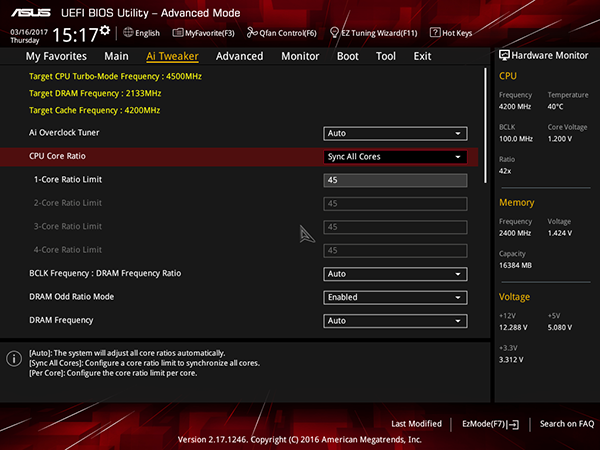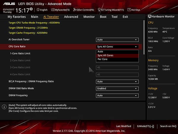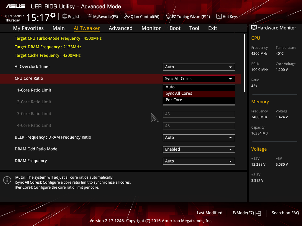 Максимальный коэффициент, который можно установить, равен максимальному коэффициенту процессора в режиме Turbo Mode (в варианте процессора Intel Core i7-7700K — 45). Если зафиксировать максимальное значение коэффициента умножения для всех ядер процессора, то получим хоть и очень незначительный, но все же разгон системы.