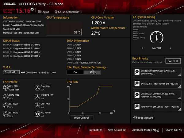 Традиционно предусмотрено два режима отображения: упрощенный (EzMode) и расширенный (Advanced).