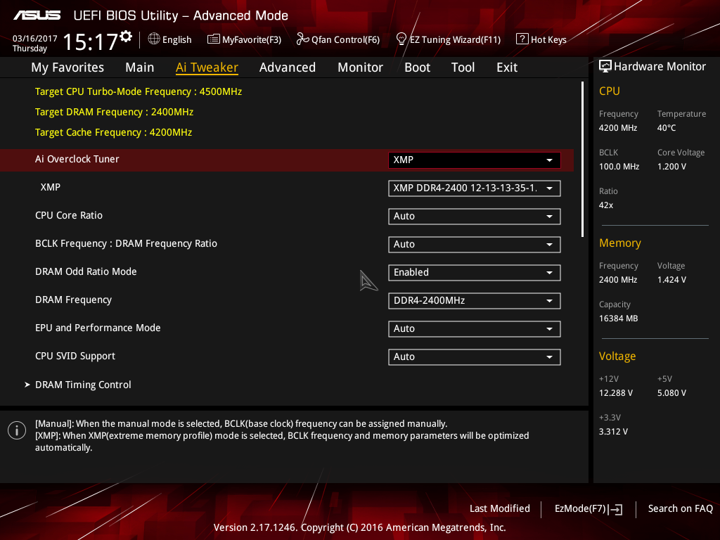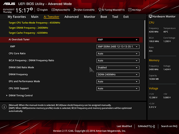 Есть возможность активации XMP-профилей памяти, однако даже если в XMP-профиле предусмотрена частота выше 2400 МГц, реально память будет работать только на частоте 2400 МГц.